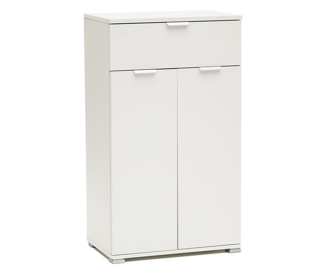 Kívül kompakt, belül tágas: ez a fehér éjjeliszekrény/tárolószekrény 45×85×38 cm (Szé×Ma×Mé) modern vonalakat és funkcionalitást ötvöz több helyiségben. A felső fiókban kulcsok, szemüvegek, töltők vagy kozmetikumok tárolhatók; a 2 ajtós rekesz 2 állítható polcot tartalmaz, amelyekkel a helyet ágyneműhöz, törölközőkhöz, dokumentumokhoz, étkészlethez vagy mosószerekhez igazíthatja. Semleges kialakítása illeszkedik a skandináv, minimál és kortárs enteriőrökbe: a hálószobában magas éjjeliszekrényként funkcionál; az előszobában tárolószekrényként; a fürdőszobában termékeket és törölközőket rendszerez; a dolgozószobában, nappaliban vagy gyerekszobában pedig diszkrét tárolóegységgé válik. Melamin bevonatú forgácslapból készült, tartós és könnyen tisztítható; fém zsanérok és karcálló lábak biztosítják a stabilitást és a padló védelmét. Teljesen összeszerelve szállítjuk: csak helyezze el és használja azonnal. A vékony profil helyet takarít meg a padlón, és hasznos felső felületet kínál lámpáknak, növényeknek vagy képkereteknek.