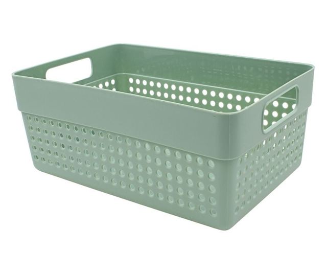 Perforált műanyag tárolókosár 23x15x10 cm Storage Solutions, fogantyúkkal, zöld