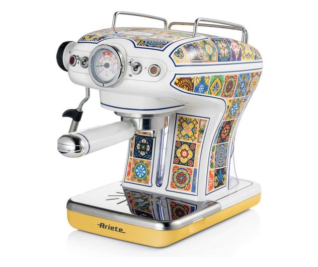 Kávéfőző Ariete Positano 1389/1P, 850 W, 15 bar, 0,9 l, Tejgőzölő, őrölt és ESE hüvely, fehér/sárga