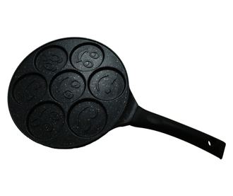 A modern kialakítású serpenyő tökéletes 7 minipalacsinta sütéséhez, beépített smiley formákkal a késztermék kellemes megjelenése érdekében .
