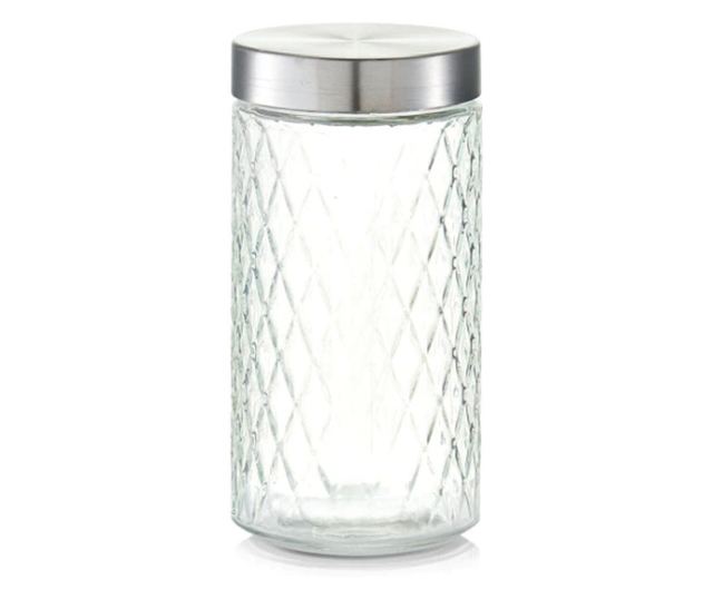 Zeller ételtároló edény, üveg / fém, 1500 ml, átlátszó / ezüst