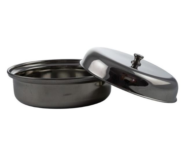 Rozsdamentes acél tál fedővel, 17 cm, ideális curry vagy más meleg ételek tálalásához