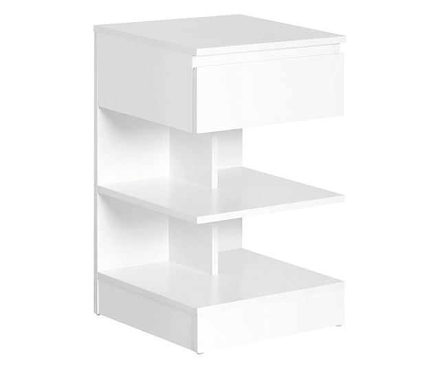 Egy nagy fiókkal és két nyitott polccal rendelkezik. Tökéletesen alkalmas hálószobában vagy nappaliban éjjeli szekrényként, könyvek, poharak vagy töltőeszközök rendezésére.