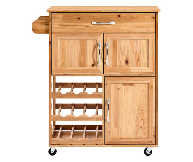 SoBuy tömörfa konyhaszekrény kerekekkel, fiókokkal és palacktartókkal, természet