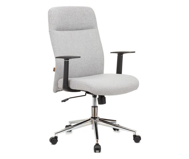Ez egy funkcionális irodai szék kerekekkel és fix karfákkal. Összeszerelést igényel, és fix ülőfelülettel rendelkezik. A szék dönthető mechanizmussal, közepes háttámlával és fix karfákkal van ellátva. Maximális teherbírása 90 kg. A 50 mm-es kerekek puha padlóra alkalmasak. A váz és az alap krómacélból készült, az ülőfelület és a háttámla pedig szövettel kárpitozott. A karfák polipropilénből készültek. Mind az ülőfelület, mind a háttámla 5 cm-es szivaccsal párnázott.