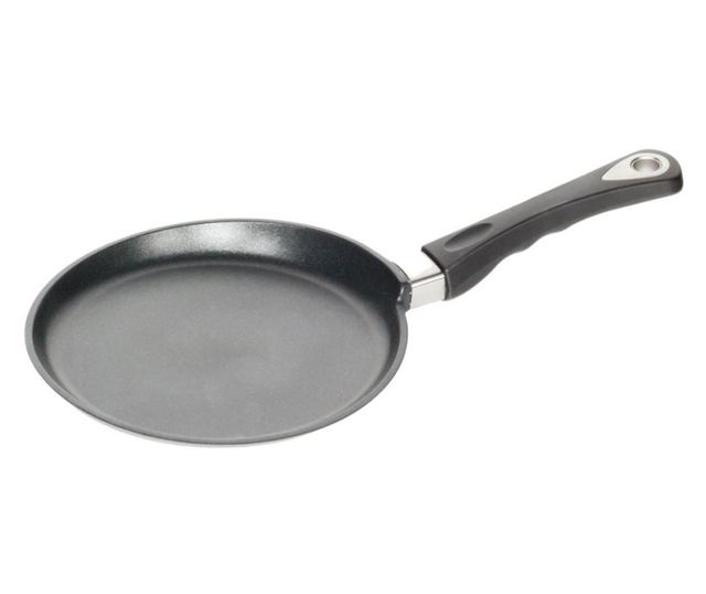Az AMT Gastroguss palacsintasütő kézzel öntött alumíniumból készült, Németországban gyártják, a hangsúlyt az egyenletes hőeloszlásra és a hosszú élettartamra helyezve. A masszív, akár 9 mm vastag aljának köszönhetően a serpenyő hatékonyan tárolja a hőt, és intenzív használat és hirtelen hőmérséklet-változások esetén is megőrzi alakját.