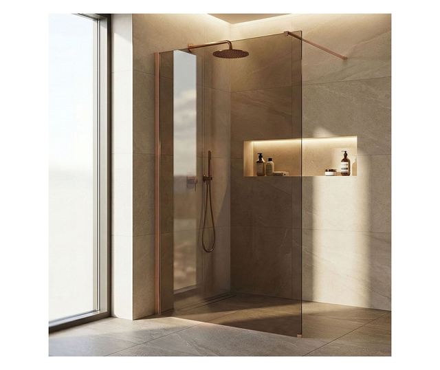 Egy melegséggel és luxussal teli fürdőszobáról álmodozik? Fedezze fel a Rea Flexi zuhanykabint egyedi konfigurációban: füstbarna üveg és szálcsiszolt réz profil. A modern forma és az elegáns felület kombinációja egyedi karaktert kölcsönöz belső terének. 8 mm-es edzett biztonsági üvegből készült, a szerkezet tartósságot és stabilitást garantál. 8 mm-es edzett üveg (füstbarna) – vastag, barna árnyalatú biztonsági üveg, amely melegséget és magánéletet visz a belső térbe. Szálcsiszolt réz alumínium profil – luxus, szálcsiszolt felület a profilon és a karon, amely szépen kiegészíti a barna üveget. Easy Clean bevonat – láthatatlan hidrofób gát, amely megkönnyíti a víz elvezetését, és véd a szappanlerakódások és a vízkőlerakódások ellen. 120 cm-es, vágható tartó – a réz színű felső stabilizáló kar az Ön egyedi igényei szerint vágható. Univerzális telepítés – a fal jobb vagy bal oldalra, a zuhanytálcára vagy közvetlenül a padlóra is felszerelhető. Walk-in kialakítás – modern, nyitott bejárat mozgó alkatrészek nélkül, garantálva a kényelmet és a megbízhatóságot. A Rea Flexi zuhanyfal megoldás azok számára, akik kifinomult stílust keresnek. A réz részletek és a barna üveg kombinációja egyedi hangulatú fürdőrészt teremt. Az Easy Clean bevonatnak és a tartós anyagoknak köszönhetően ez a termék a magas esztétikát ötvözi a mindennapi funkcionalitással.