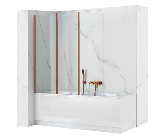Fedezze fel a fürdési kényelem új dimenzióját a Rea Agat 120 kádparavánnal, egyedi, szálcsiszolt réz kivitelben. Tökéletes választás azok számára, akik a kád és a zuhany előnyeit szeretnék ötvözni az elegáns dizájn feláldozása nélkül. A masszív konstrukció és a modern esztétika luxus és egyedi jelleget kölcsönöz fürdőszobájának. Kádparavánunk számos funkcionális jellemzőt kínál: Az összecsukható harmonika kialakítás lehetővé teszi, hogy a paraván teljesen a falhoz hajtható, így értékes helyet takaríthat meg. A szálcsiszolt réz színű profilok modern és elegáns megjelenést kölcsönöznek a belső térnek. A 120 cm-es szélesség optimális kényelmet biztosít zuhanyozás közben, és hatékony védelmet nyújt a fröccsenő víz ellen. A három üvegtábla stabilitást és könnyű használatot garantál a mindennapi használat során. A kompakt kialakítás ideális választássá teszi ezt a modellt még kis fürdőszobákba is.