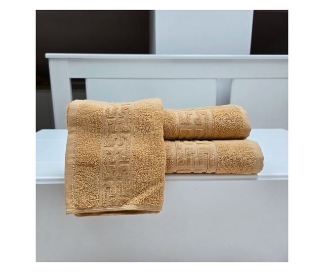 3 db görög szegélyű jacquard plüss luxus fürdőlepedő szett - 100% pamut, 500g/nm, cappuccino