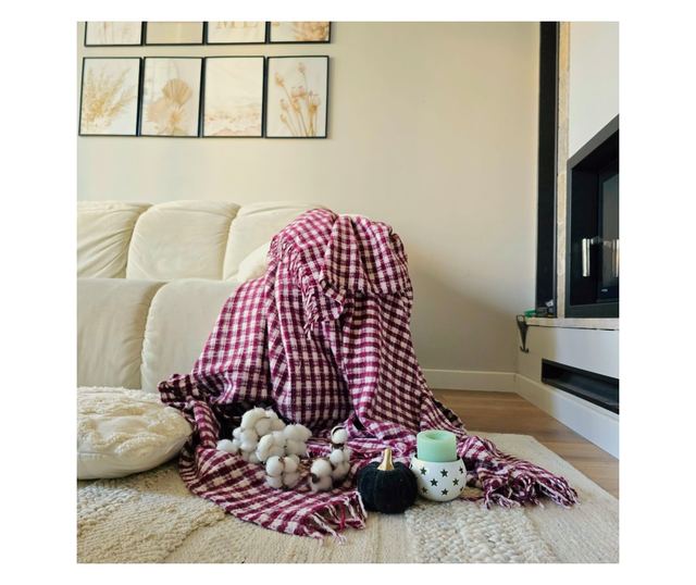 Patura Kotonia Home - Takaró kétszemélyes ágyra, mérete 180x230 cm, bordó bojtosokkal