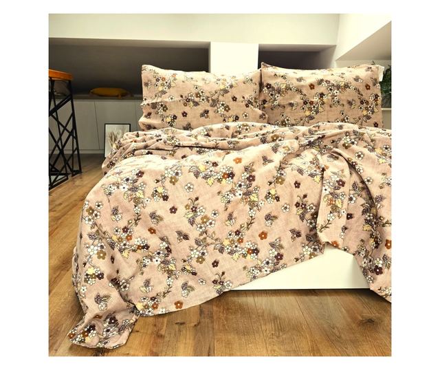 4 részes ágynemű garnitúra, 2 személyes, klasszikus sima szövet, 100% pamut, virágos dekor - 24