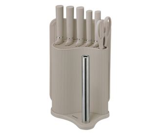 Klausberg KB 7978 késkészlet, 8 darabos, rozsdamentes acél, állvány, papírtörlő tartó, bézs