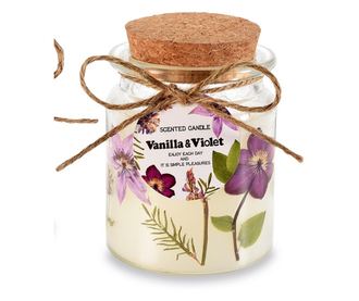 Ez a szett két illatos üveggyertyát tartalmaz. Minden gyertya viaszból készült, mécsessel, és üvegben érkezik. Az illat vanília és ibolya keveréke. Minden gyertya átmérője körülbelül 7,5 cm, magassága 10 cm, becsült égési ideje 50 óra.