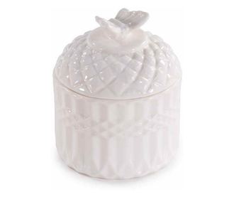 Vanília illatú gyertya porcelán tégelyben, dombornyomott díszítéssel. Tartalmazza a fedőt. Méretek: 7,5 cm átmérő x 9 cm magasság. Égési idő: 8 óra.