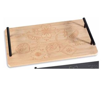 Bambuszfából és palakőből készült, fém fogantyúkkal. Gravírozott díszítéssel. Minden tálca hossza 35 cm, szélessége 20 cm és magassága 4.5 cm.