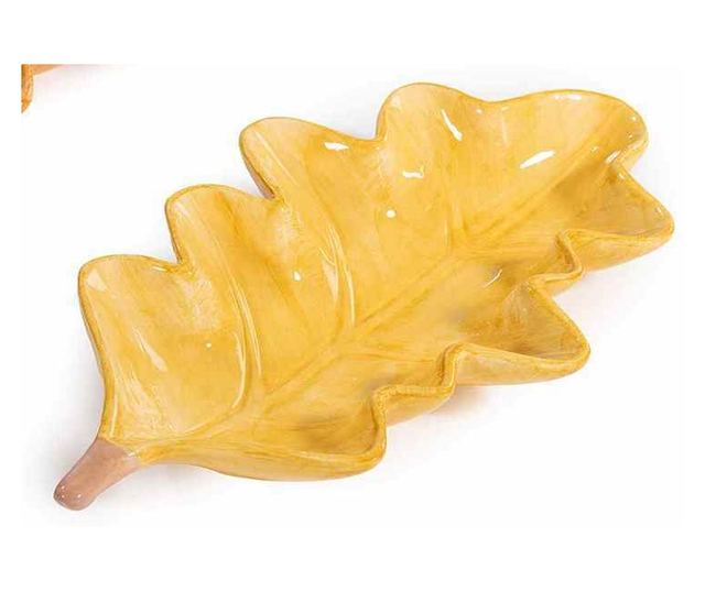 Ezek a kerámia dísztálak két darabos szettben kaphatók. Minden tál 22,5 cm hosszú, 13 cm széles és 3,5 cm magas. A barna és sárga színkombináció romantikus hangulatot kölcsönöz otthona dekorációjának. A "Home Decor" kollekció része.