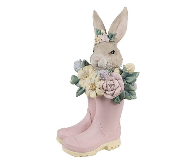 Polirezinből készült. Méretek: 13 cm hossz x 13 cm szélesség x 23 cm magasság. Ez a romantikus stílusú dekoráció a húsvéti kollekciónk része.