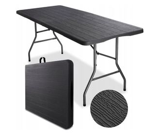 Fekete összecsukható asztal, kerti, kempingezéshez vagy horgászathoz, bőrönd stílusú, JollyMag, SC02BR, 70x180 cm