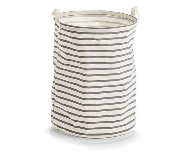 Zeller szennyestartó kosár, "Csíkos", Vászon, Szürke, Ø38x48 cm