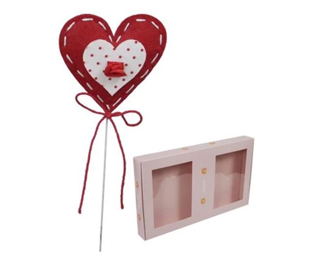 Tegye teljessé dekorációját egy finom és romantikus kiegészítővel ezzel a textil szív alakú botocskán lévő díszítéssel. Kellemes megjelenésével és kompakt méreteivel (6,5 x 7 cm) ez a dísz ideális virágkompozíciókhoz, csokrokhoz, személyre szabott ajándékokhoz vagy kreatív projektekhez.