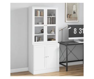 Könyvespolc 2 szekrénnyel, polcokkal és üvegajtókkal - Fehér