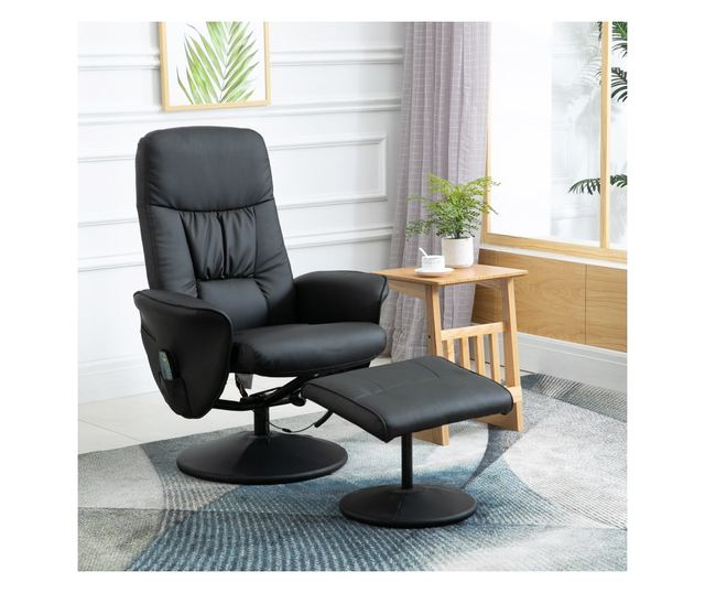 Dönthető fotel lábtartóval, 145° dönthető háttámla 360° forgó ülőfelülettel, 10 masszázsponttal, fekete