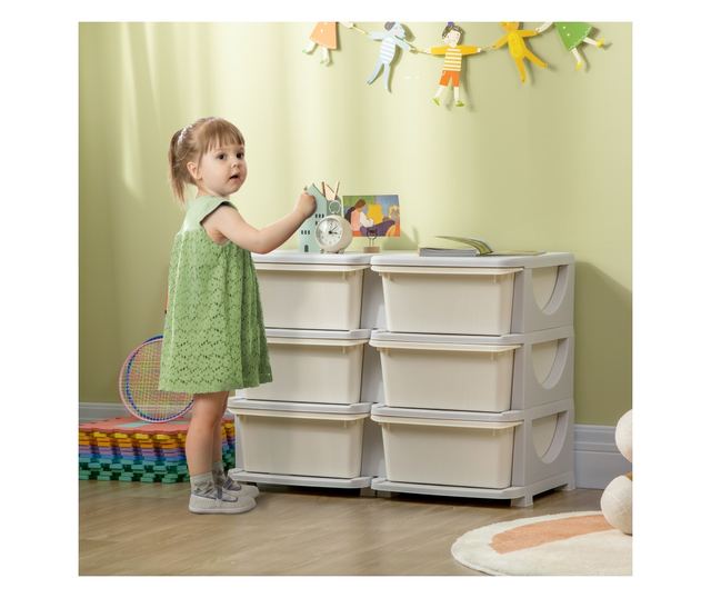 A mi HOMCOM 6 fiókos komódunk optimális megoldás arra, hogy megtanítsuk a gyerekeket a játékaik és könyveik rendszerezésére a saját tereikben, hogy fenntartsák a rendet. Strapabíró PP-ből készült, a szerkezet biztonságos a használathoz és könnyen tisztítható, a sima éleknek köszönhetően pedig biztosítja a gyermekek biztonságát. A dobozok megakadályozzák a rendetlenséget a szobákban, így minden tér kifogástalan és hívogató.