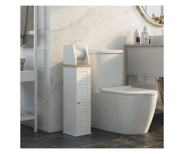 • KLASSZIKUS KIALAKÍTÁS: Ez az elegáns, keskeny kialakítású WC-papírtartó fürdőszobaszekrény ideális szűk helyekre. Egyszerű és kifinomult kialakításával tökéletesen illeszkedik a különböző dekorációs stílusokhoz.