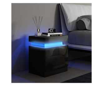 LED éjjeliszekrény 16 színnel és 4 móddal, 2 fiókkal, fa, 45x35x52 cm, fekete