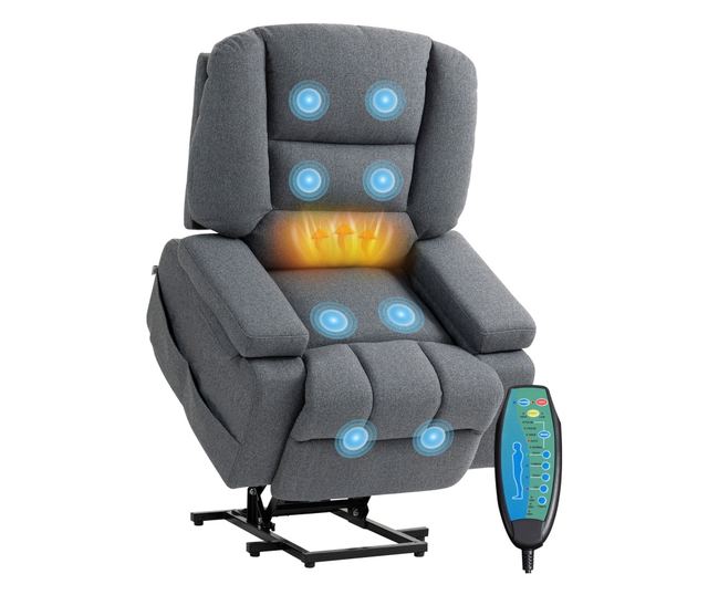 Emelje új szintre a kényelmet a HOMCOM felhúzható pihenőszékével. A váz szinte függőleges helyzetbe tudja emelni, 20°-os ülésmagasság-emelkedéssel, ami ideális időseknek vagy mozgáskorlátozottaknak. Állítsa be a hátradőlés szögét felegyenesedett pozíciótól 135°-ig, lábtartóval, mindezt egy gombnyomásra, és élvezze a 8 masszázspontot az Ön kényelme érdekében.