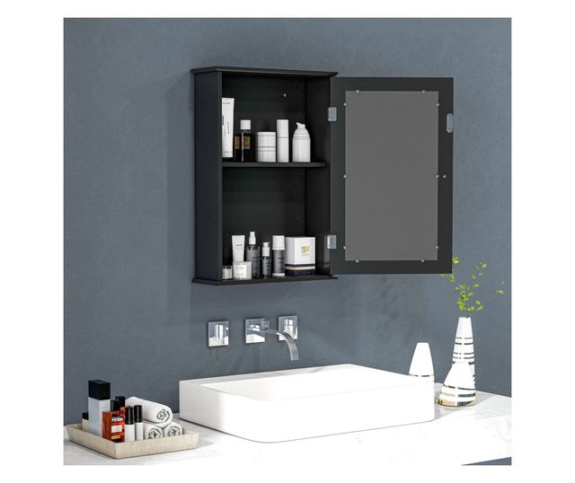 • 2 AZ 1-BEN: A falra szerelhető fürdőszobaszekrény 2 polcának köszönhetően nemcsak sok holmit tárolhat, hanem az ajtókon tükör is található, ami kényelmes sminkeléshez vagy borotválkozáshoz.