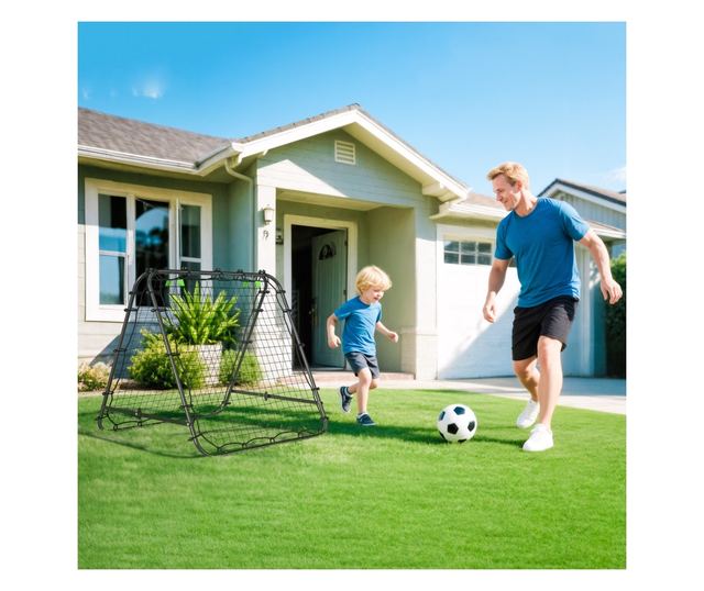 Szórakoztassa és eddze a gyerekeket a szabadban ezzel a HOMCOM futballkapuval. Porszórt acélcsövekből és PE hálóból készült kapunk elég masszív ahhoz, hogy bárki használhassa minden időjárási körülmények között. A háló különböző szögekben pattintja vissza a labdát, hogy gyakorolhassák a futballjátékot, és fejlesszék a labda pontosságát, erejét és irányítását. A szerkezet összeszerelése is nagyon egyszerű.