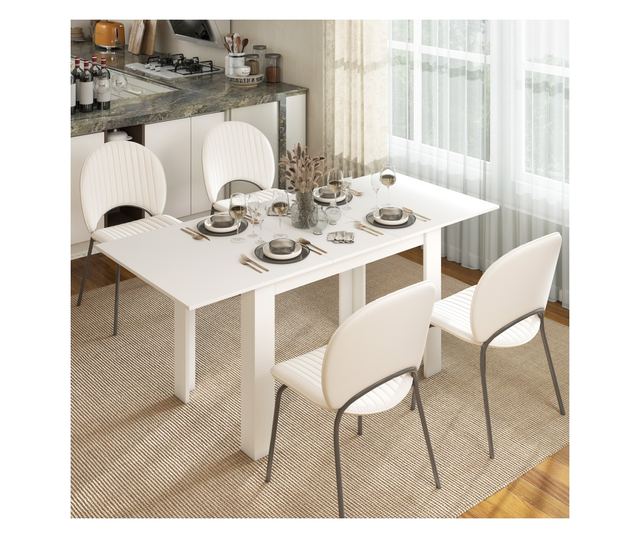 Képzelje el, hogy vendégeket fogad anélkül, hogy a helyhiány miatt kellene aggódnia. A HOMCOM nyitható étkezőasztal átalakítja az étkezőt, tökéletessé téve családi vacsorákhoz vagy baráti összejövetelekhez. Az acél kihúzó sínek lehetővé teszik a hosszabbító lapok rendezett tárolását. A nyitható étkezőasztal fehér felülete zökkenőmentesen illeszkedik bármilyen dekorációhoz.