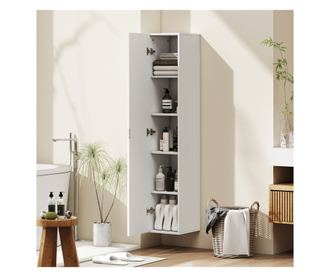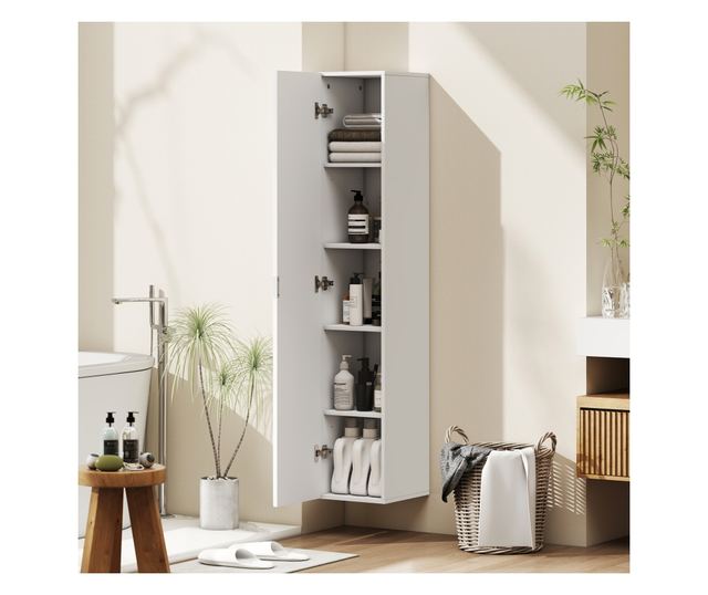 Ez a magas fürdőszobai szekrény a HOMCOM-tól forradalmasítja a napi rutint. Falra szerelhető, optimalizálja a helyet és védi tárgyait a portól és a nedvességtől, míg a kifinomult ajtódesign művészi jelleget kölcsönöz. A falra szerelhető fürdőszobai szekrény Soft Close zsanérja megakadályozza a váratlan becsapódások okozta kellemetlenséget, így fürdőszobája funkcionális és békés hely a mindennapi pillanatokhoz.