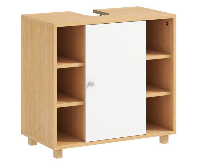 • EGYSZERŰEN ILLESZKEDIK A LEGJOBB MOSDÓKHOZ: A 15 x 20 cm-es U-alakú kivágásokkal ez a fürdőszobai szekrény zökkenőmentesen illeszkedik a mosdó alá, kompatibilis fali vagy álló mosdókkal.
