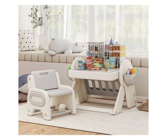 Multifunkciós Gyerek Asztal és Szék Szett - Fehér Szürke HDPE & PP