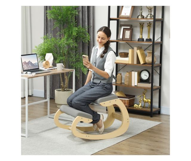 Újítsa meg munkaterületét és ülőpozícióját a HOMCOM térdelőszékkel! Az egyenetlen testtartás javítására és a hátfájás csökkentésére tervezett szék az optimális kényelem érdekében egyenletes súlyeloszlást biztosít. Lengő funkciója növeli a koncentrációt és az energiát munka közben, de pihenéshez is ideális. A szerkezet támasztó háttámlával és elegáns bükkfa vázzal rendelkezik.