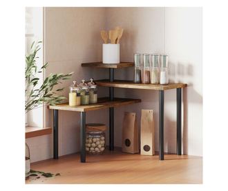 Helytakarékos Forgatható 3 Szintes Konyhai Polc, Fa és Acél, 40x18x36,5 cm, Rusztikus Barna