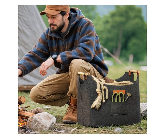 • ROBUST FILC: Puha filcből készült, ez a rönktartó használat közben megvédi a padlót a karcolásoktól, modern megjelenést kölcsönözve a környezetnek.