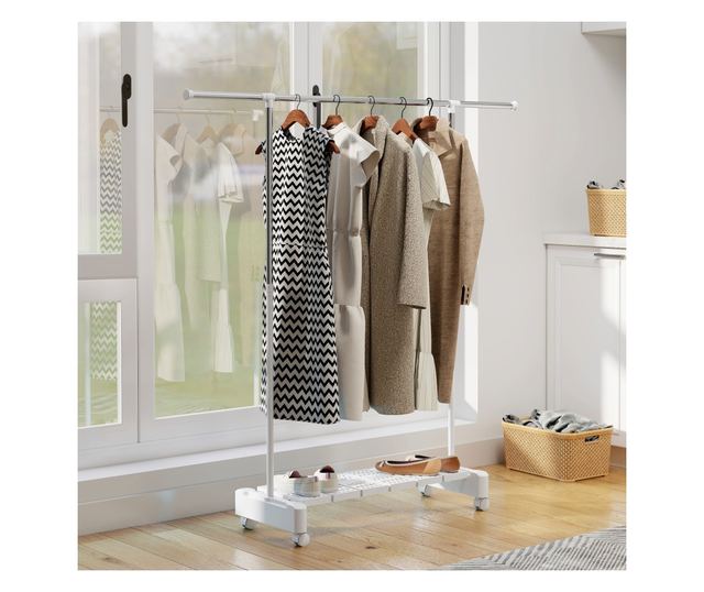 Bővíthető függőleges ruhaszárító kerékkel és cipőtartó polccal, fehér