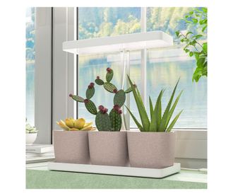 • NÖVÉNYNEVELŐ LÁMPA 3 CSERÉPPEL: Három tartályt tartalmaz, mindegyik hálós réteggel és vízelvezető lyukakkal a gyökérrothadás megelőzése érdekében. A kettős kialakítás optimális nedvességszintet tart fenn, tökéletes elfoglalt életmódhoz és kis helyekre, mint ablakpárkányok vagy munkafelületek.