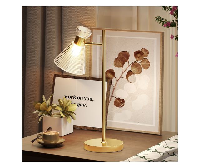 Modern asztali lámpa állítható matt borostyán üveg lámpaernyővel, E27 foglalattal, arany színben