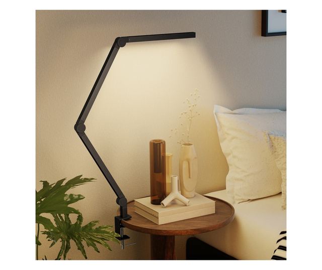 Dimmelhető LED asztali lámpa bilincsel, állítható karral és 2 fényszínnel, fekete