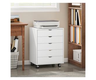 Az 5 fiókos HOMCOM irodai iratszekrény rendet teremt munkahelyén, rendszerezve a nagyméretű dokumentumokat. Ezt az irodabútort a kerekeknek köszönhetően könnyedén mozgathatja, és rögzítheti, hogy stabilan és stabilan tartsa ott, ahol szüksége van rá, minden elemet kéznél tartva. Kompakt és helytakarékos kialakítása lehetővé teszi, hogy az iratszekrényt az asztal alá tárolja, maximalizálva a helyet.