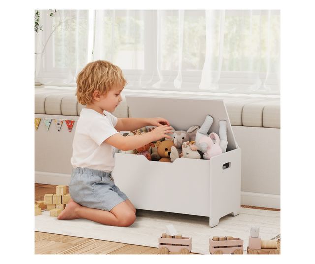 • BIZTONSÁG-ORIENTÁLT KIALAKÍTÁS: A játéktároló fedele a biztonsági zárnak köszönhetően bármilyen szögben stabilan nyitva marad, a lekerekített sarkok pedig növelik a biztonságot, miközben a gyermekek a közelben játszanak.