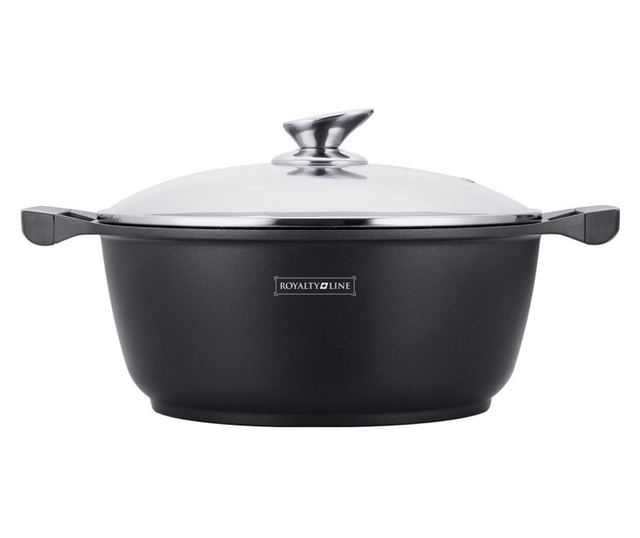 Royalty Line RL-BS30ML mélyfazék, 30 cm, 7 l, márvány tapadásmentes bevonat, üvegfedél, PFOA-mentes, indukciós, fekete