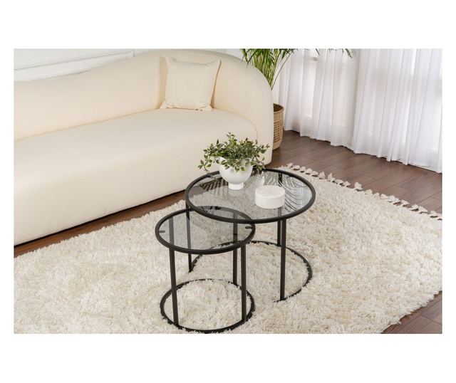 Frissítse fel nappaliját az Aurum Small Black Grey kávézóasztal szettel, amely a modern dizájnt és a tartósságot ötvözi. Edzett üvegből és tömör fém szerkezetből készült szett letisztult vonalaival és elegáns fekete-szürke palettájával tűnik ki. A minimalista dizájn kifinomult hangulatot kölcsönöz, a két különböző méret pedig rugalmasságot és elegendő helyet kínál a mindennapi használatra vagy a vendégekkel töltött pillanatokra. Stabil és arányos, ez a szett ideális egy modern és hívogató nappalihoz. Finom központi elem, amely stílust és funkcionalitást hoz minden otthonba. Anyaga: 100% edzett üveg Üvegvastagság: 4 mm Szerkezet: 100% fém Szerkezetvastagság: 1,5 mm Láb méretei: Szélesség: 15 mm Mélység: 15 mm Kisebb asztal méretei: Szélesség: 42 cm Magasság: 39 cm Mélység: 42 cm Nagyobb asztal méretei: Szélesség: 60 cm Magasság: 43 cm Mélység: 60 cm Csomagok száma: 1 Csomag méretei: 62 × 12 × 62 cm Súly: 10,2 kg (1 db)