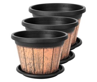 Belle Vous 3 db Hordó alakú virágcserép szett, 23 x 16 cm, Rusztikus dizájn, 8,5 L, Műanyag, vízelvezető lyukakkal és alátéttel,
