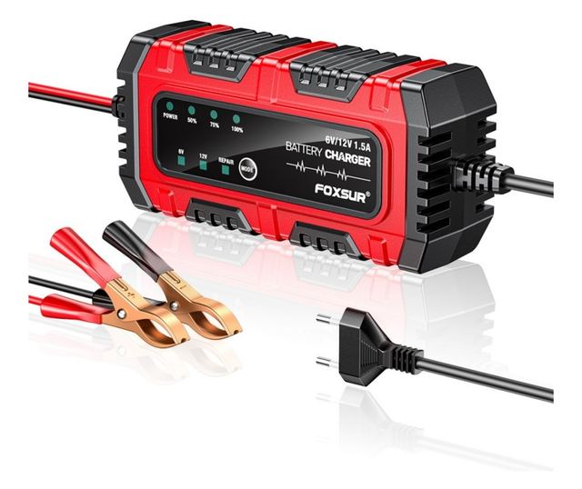 A FOXSUR FBC061215E egy automatikus és intelligens töltő 6 V-os és 12 V-os akkumulátorokhoz, amelyet autó-, motorkerékpár-, robogó- vagy elektromos jármű akkumulátorainak hatékony töltésére és karbantartására terveztek gyermekek számára. 4 Ah-tól 30 Ah-ig terjedő akkumulátorokhoz alkalmas, biztonságos, stabil és mikroprocesszor-vezérelt töltést kínál.
