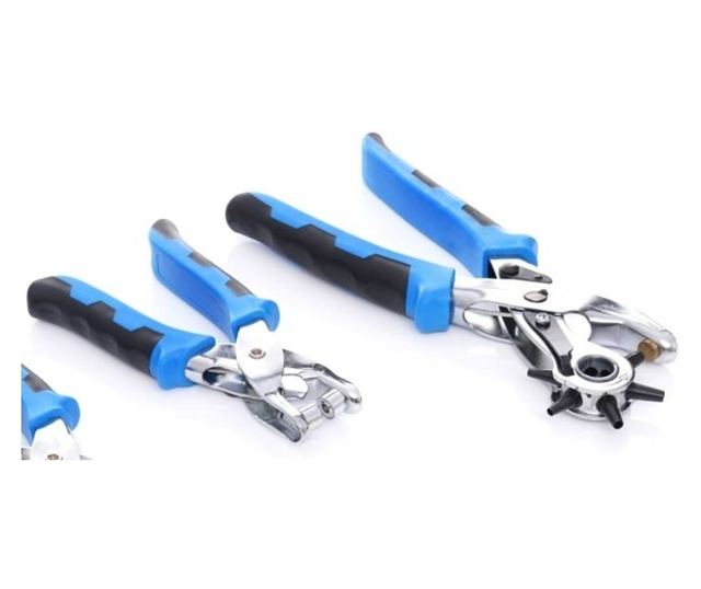 Ideális lyukak készítéséhez. A fogók olyan anyagokhoz lettek tervezve, mint: filc, bőr, textil, műanyag fólia és sok más. Készletünk nélkülözhetetlen a szabás-varrás és a ruhák, cipők átalakításához. Nagyon könnyen használható és ergonomikus. Kétkomponensű, csúszásmentes fogantyúk, biztonsági zárral a biztos fogás érdekében.